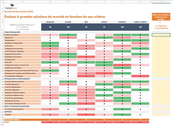 - scoring global de chaque EPM pondéré selon vos priorités