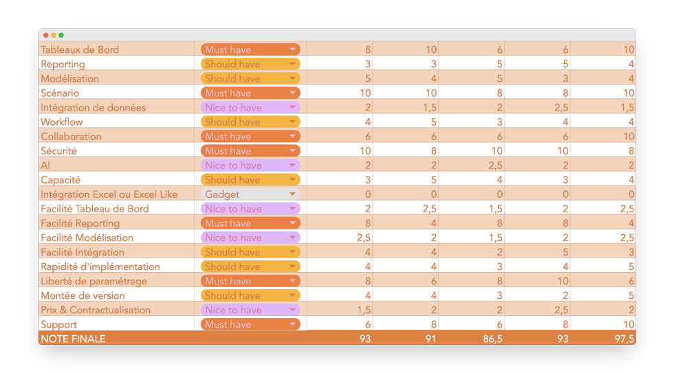 Quelle solution de FP&A vous convient le mieux ? Pour le savoir, téléchargez notre benchmark des principaux EPM du marché, priorisez vos besoins, et comparez les solutions.