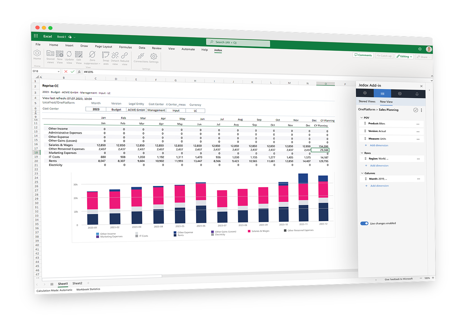 Parmi les leaders des solutions FP&A, Jedox permet aux directions financières de construire ses budgets, rolling forecasts, reportings… directement depuis une interface familière à ses utilisateurs : Excel.