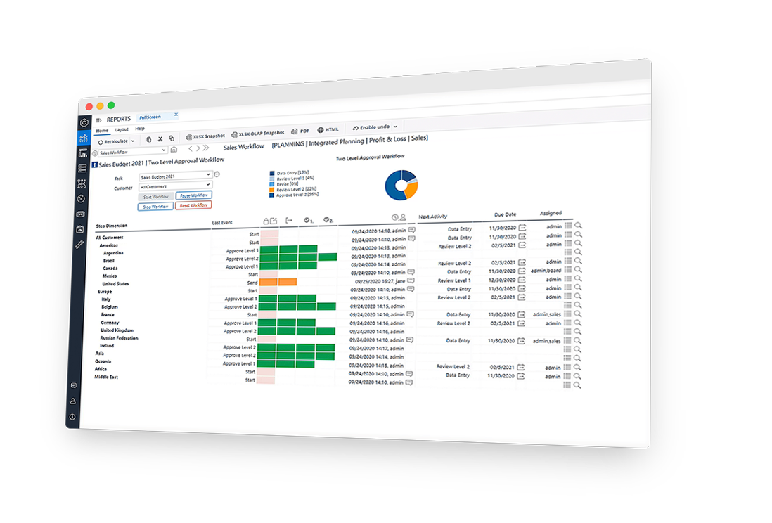 • une suite complète d’outils (planification, analyse, workflows, rapports, tableaux de bord…),
